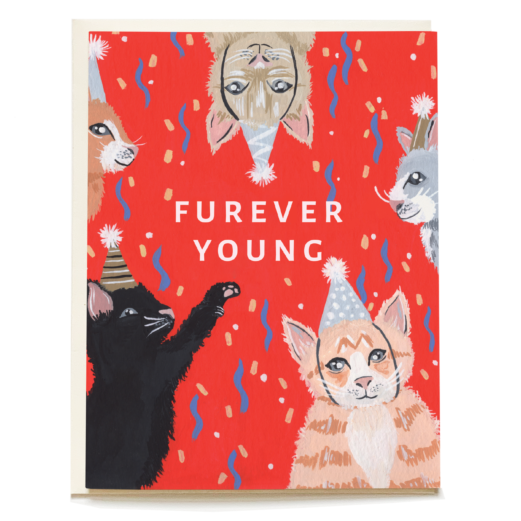 Kitten Party Birthday Greeting Card - cat lover - confetti - red