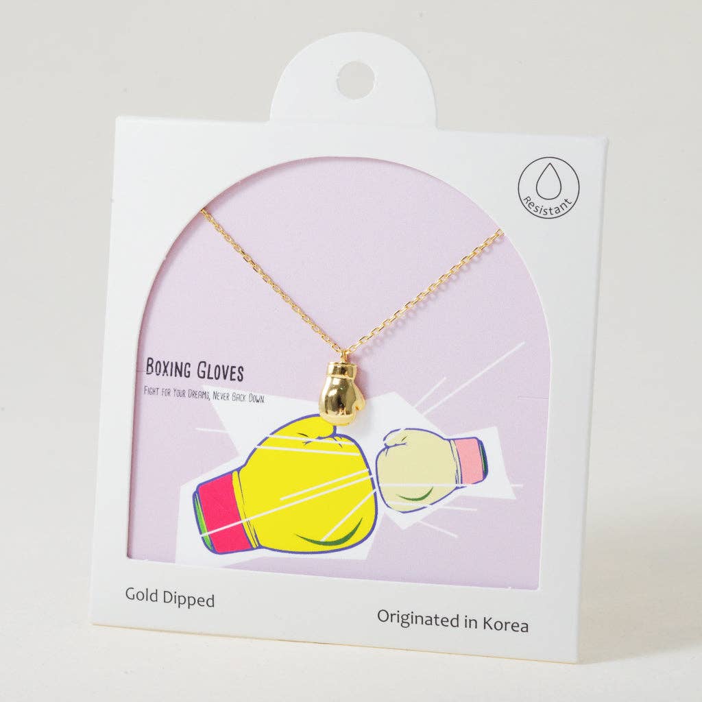 Bring the fight—and the fashion—with the Knockout Charm Necklace. Featuring a mini gold-dipped boxing glove charm, this necklace is perfect for those who love to stay strong, bold, and unapologetically fierce.
