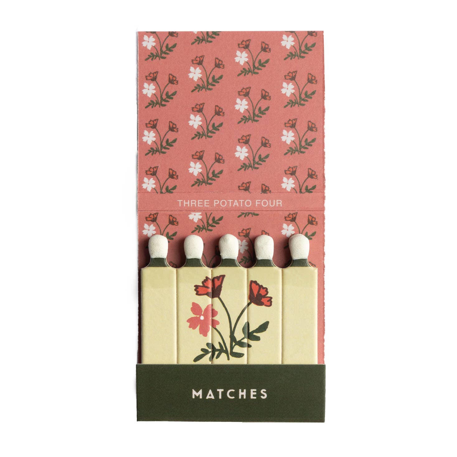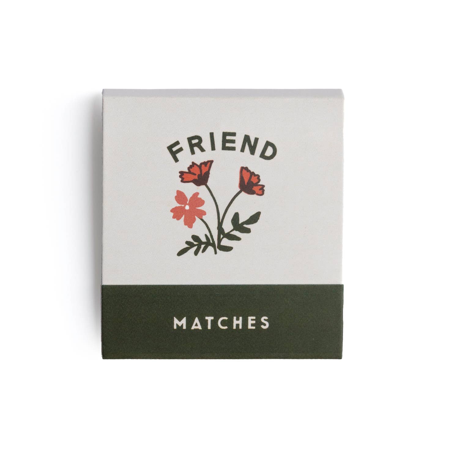 A handy little matchbook with 10 double-sided matchsticks and a printed cover. Good-looking enough to leave out. Handy enough to keep one in every room. Designed to feel a little familiar—a small nod to vintage collectible matchbooks that your grandparents used to collect.