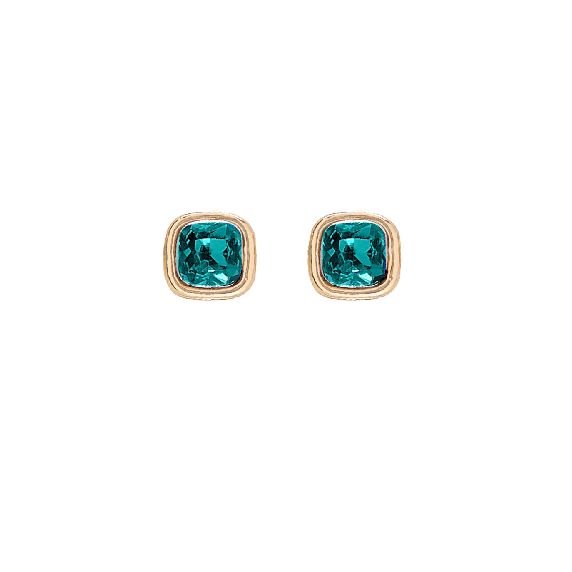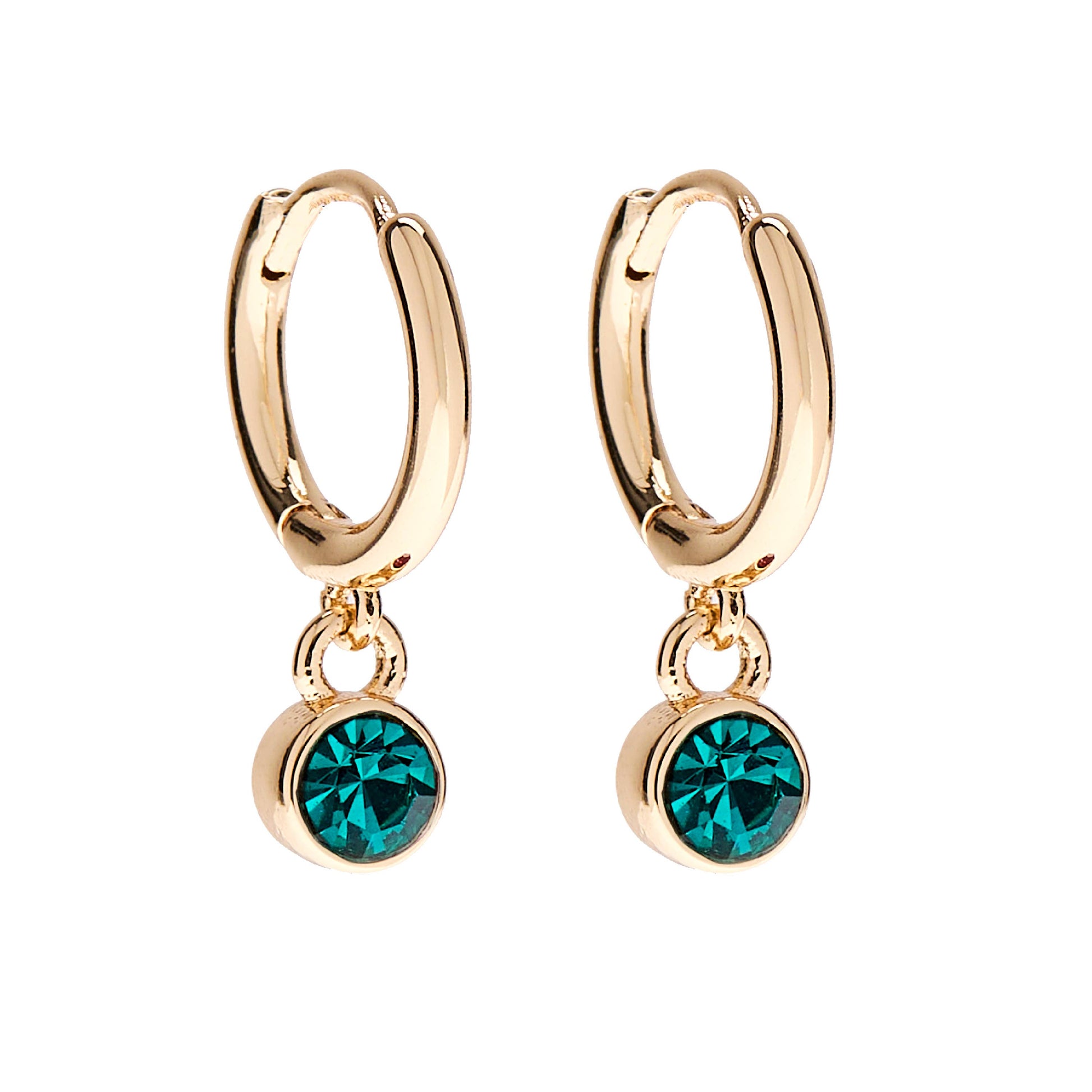 The Birthstone collection lets you individualize your everyday style with a set of earrings you can mix and match for any occasion. The May Birthstone Earrings showcase delicate huggie hoops with a dangling emerald-toned stone that represents hope, matching cushion stone studs, and a gold plated triple dot bar.