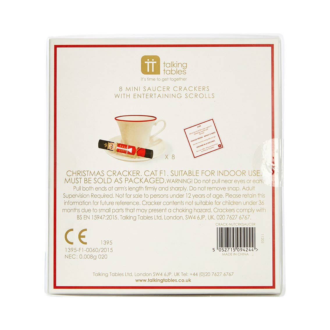 Pack of 8 mini Christmas crackers by Talking Tables. With a traditional red and green Nutcracker designs these festive crackers will be loved by the whole family. Each cracker contains an entertaining scroll with a joke to get the whole family laughing. Position each cracker on your Christmas table as place settings for guests or hide between branches and use to decorate a Christmas tree.