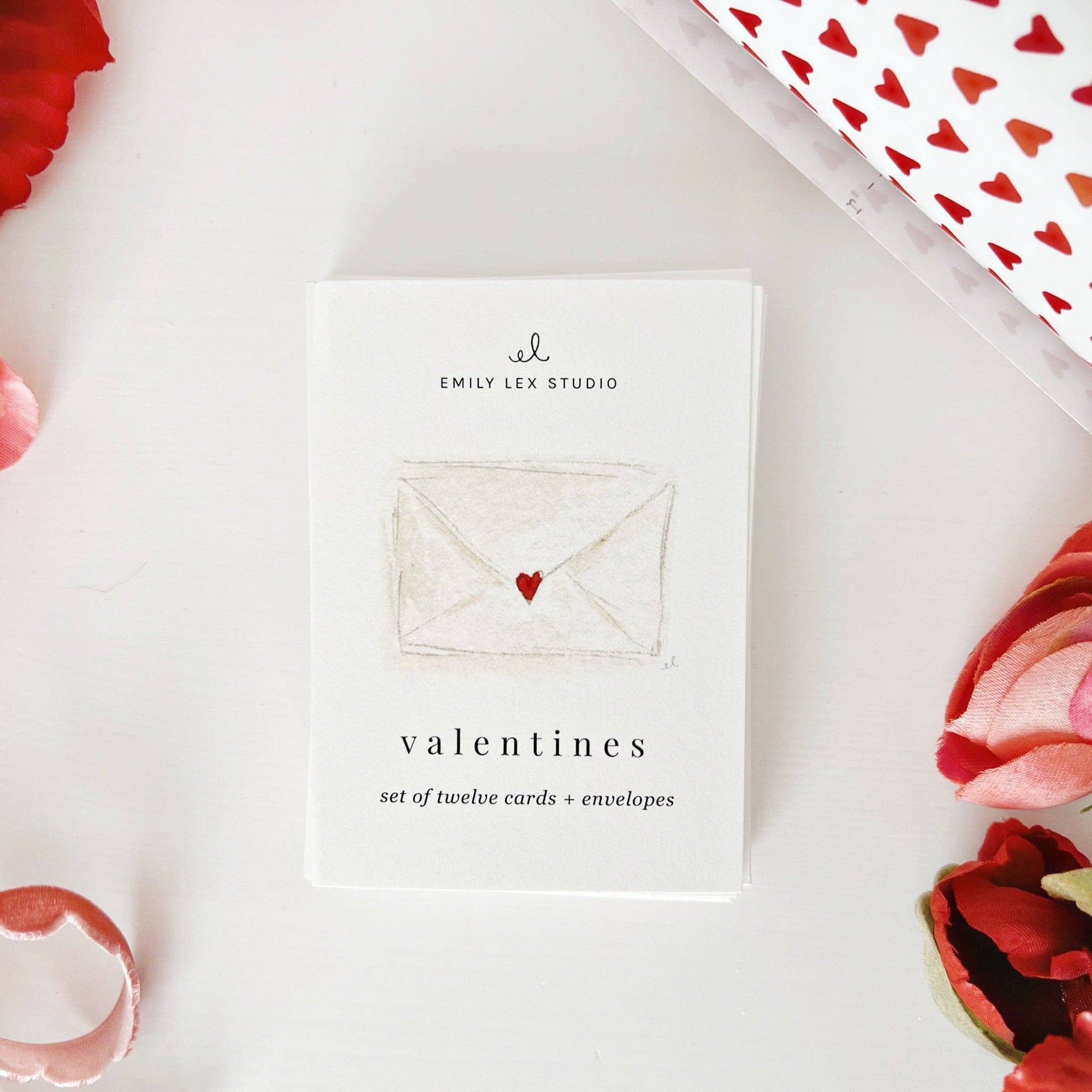 Send sweet valentines to your loved ones, classmates, co-workers, neighbors, and more. The mini valentine cards feature a charming watercolor illustration of valentine-y items on the top with space to fill in 'to' and 'from'. Sweet little envelopes and heart stickers for sealing are included.