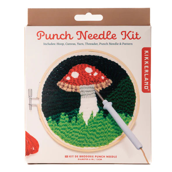 Learn the traditional handicraft of punch needle or rug hooking and create your very own miniature tapestry. Kit comes with everything needed including: 1 adjustable bamboo hoop, 1 punch needle, 1 needle threader, 1 cotton cloth with printed template, and plenty of yarn to complete the design. Great for beginners!