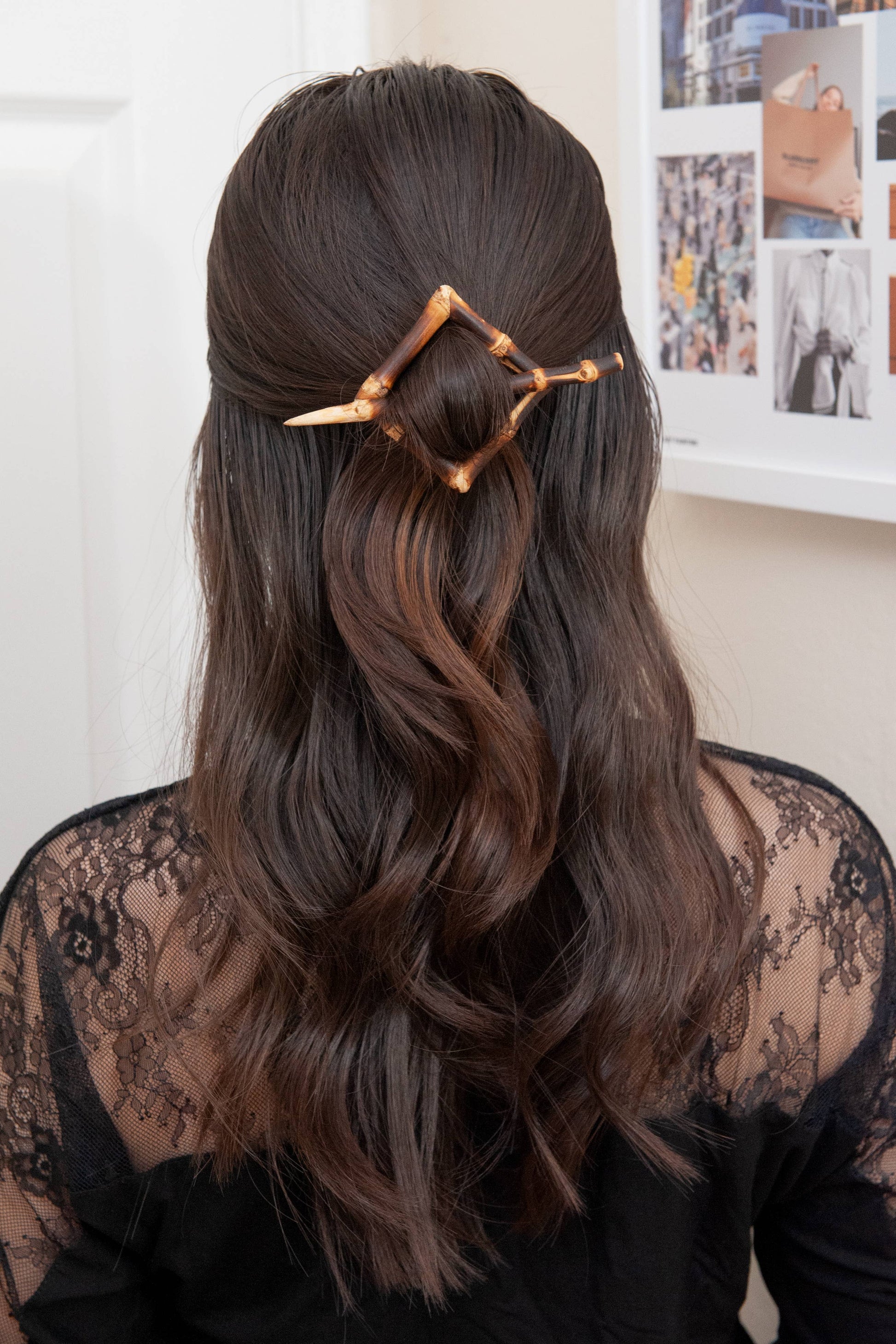 Natural Bamboo Root Square Hair Slide