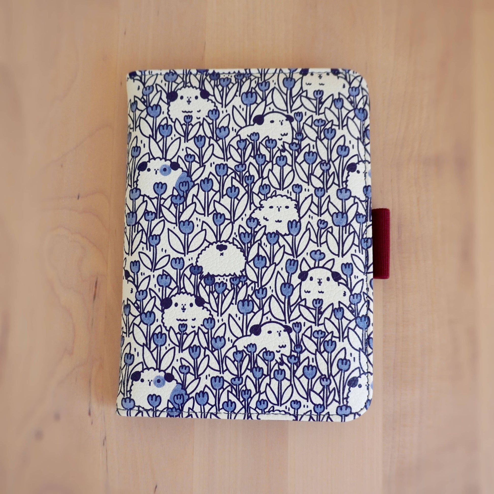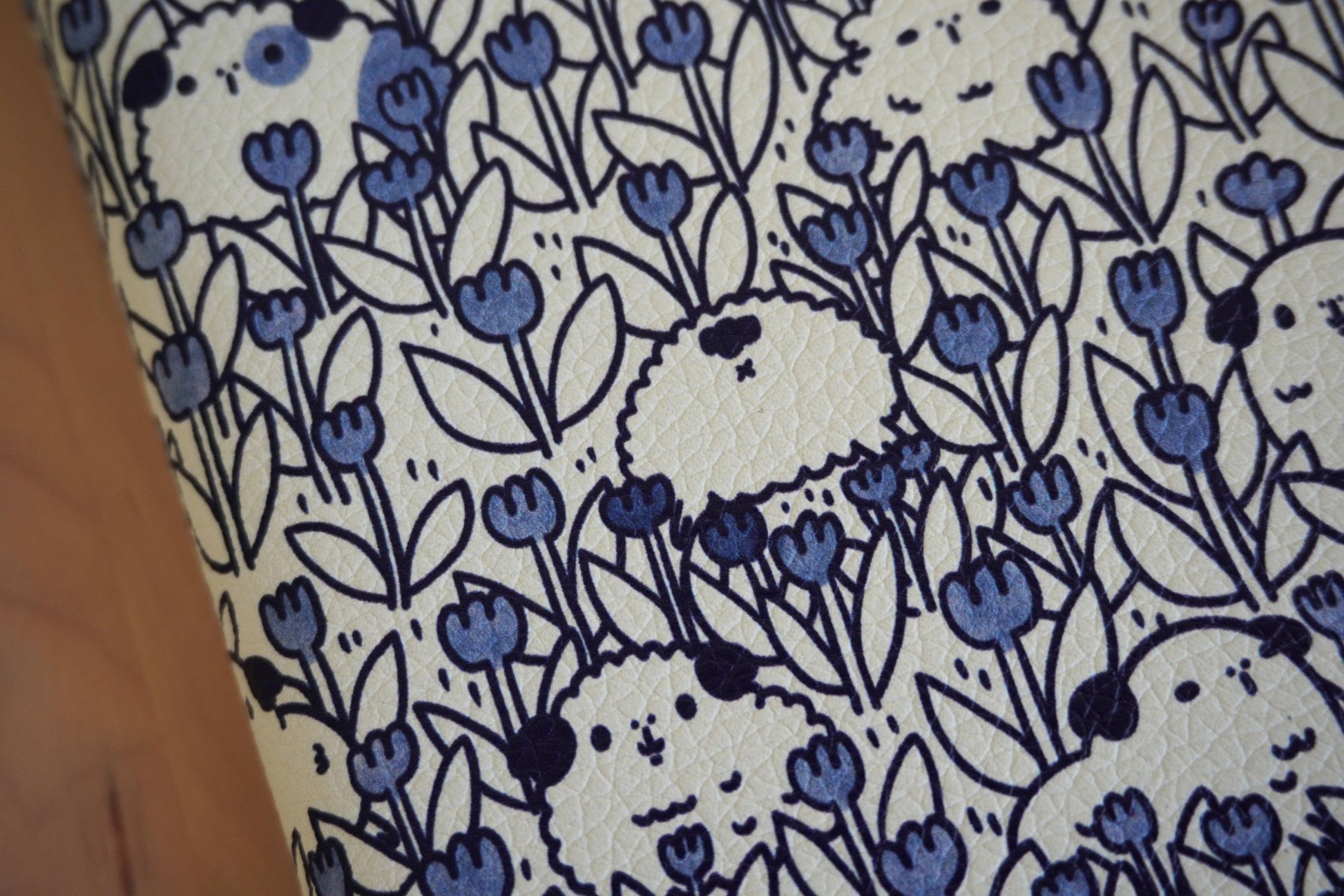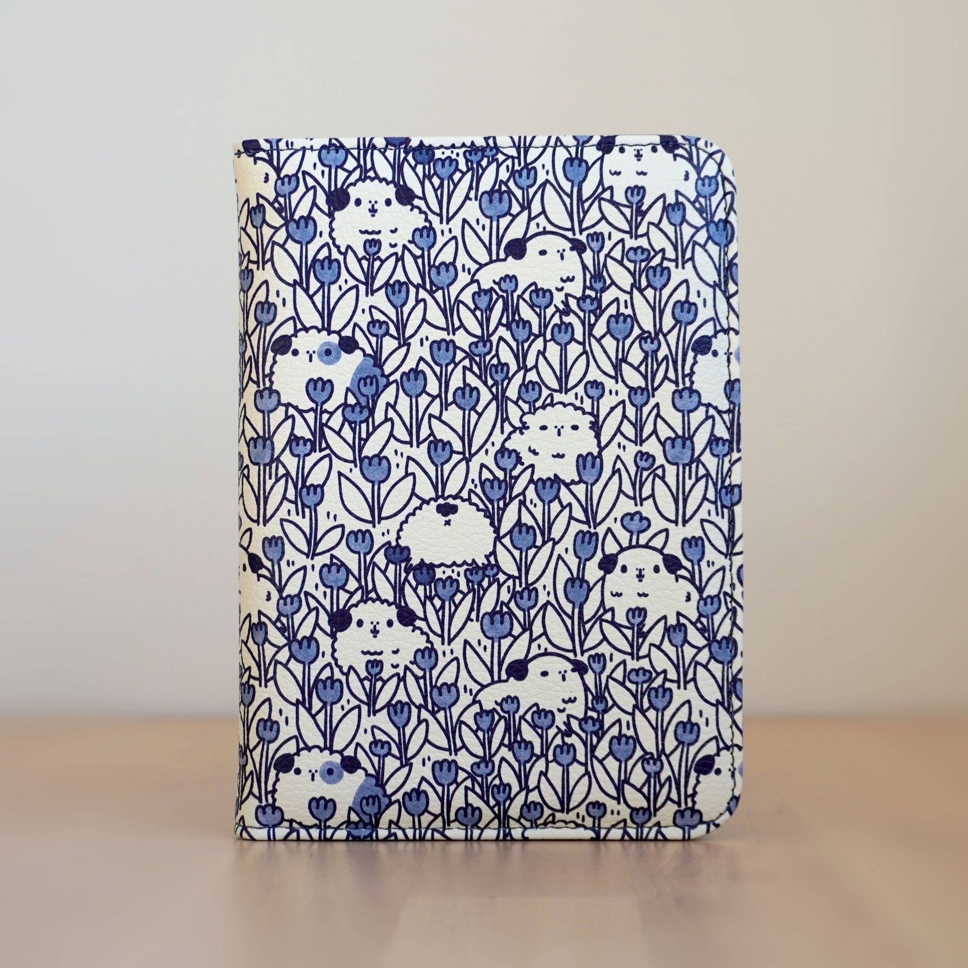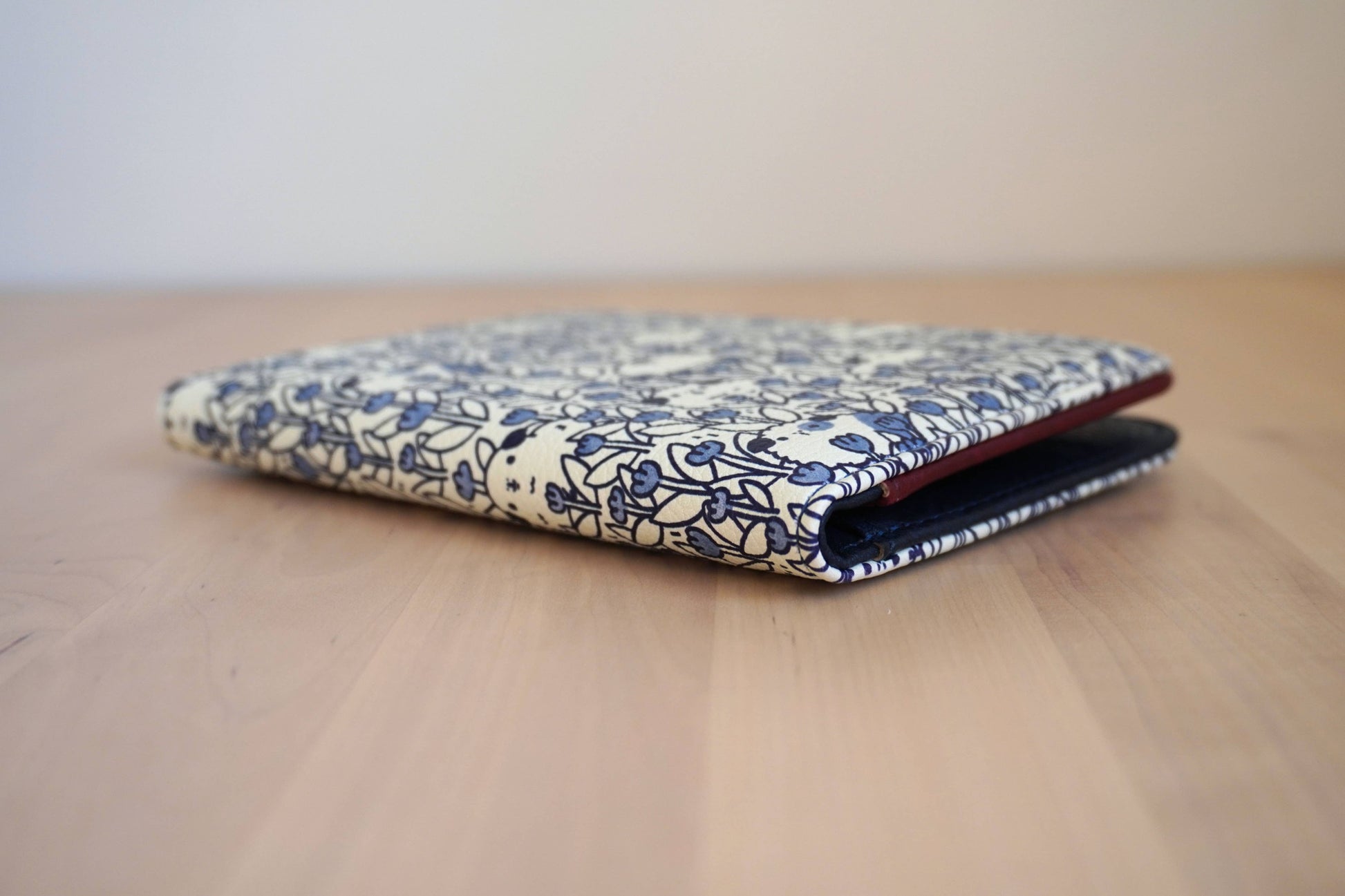 RFID Blocking Passport Wallet featuring Noristudio Guinea Pigs and Tulips Pattern in Navy Blue and Ivory