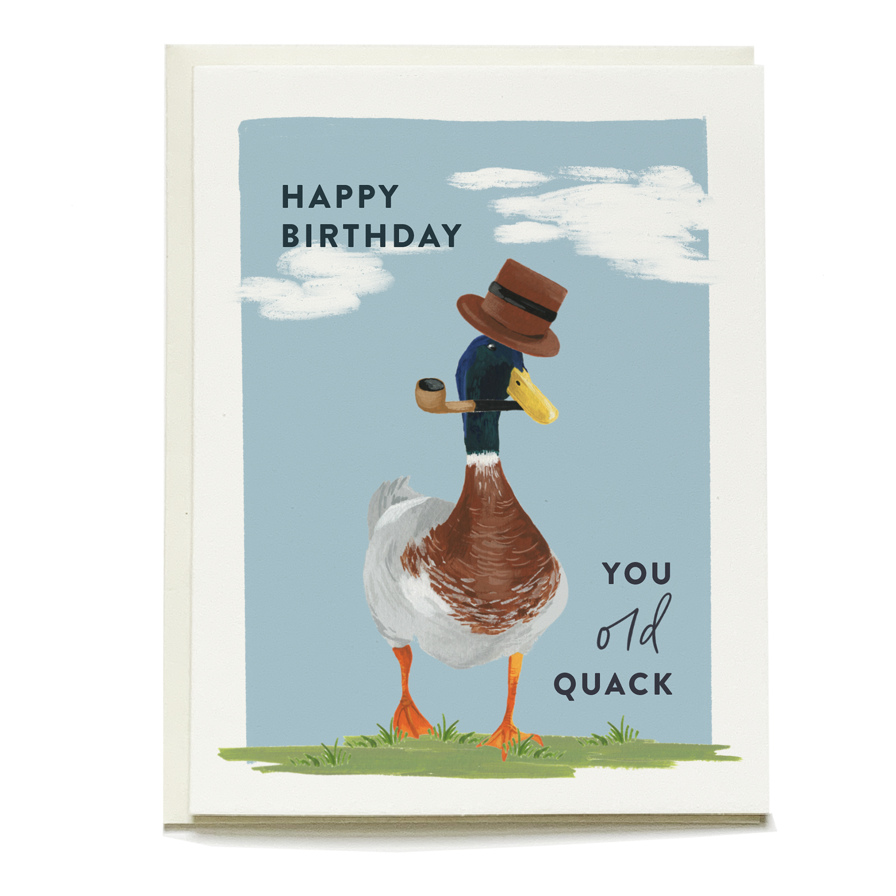 Old Quack Birthday Greeting Card - mallard, duck, smoking, pipe, top hat, grumpy, geezer, men