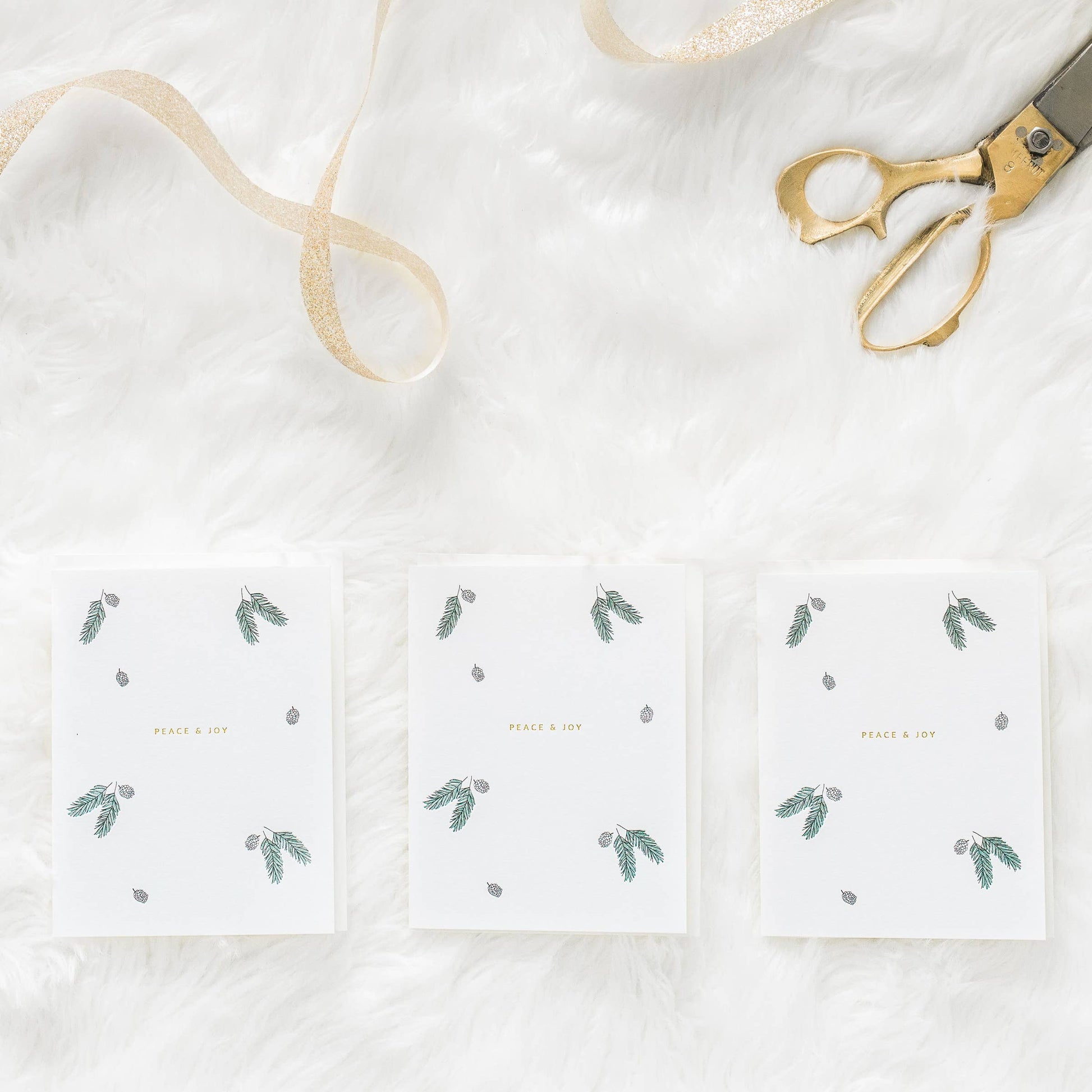 Bring peace & joy to their holidays with our hand illustrated pines paired with gold foil accents.