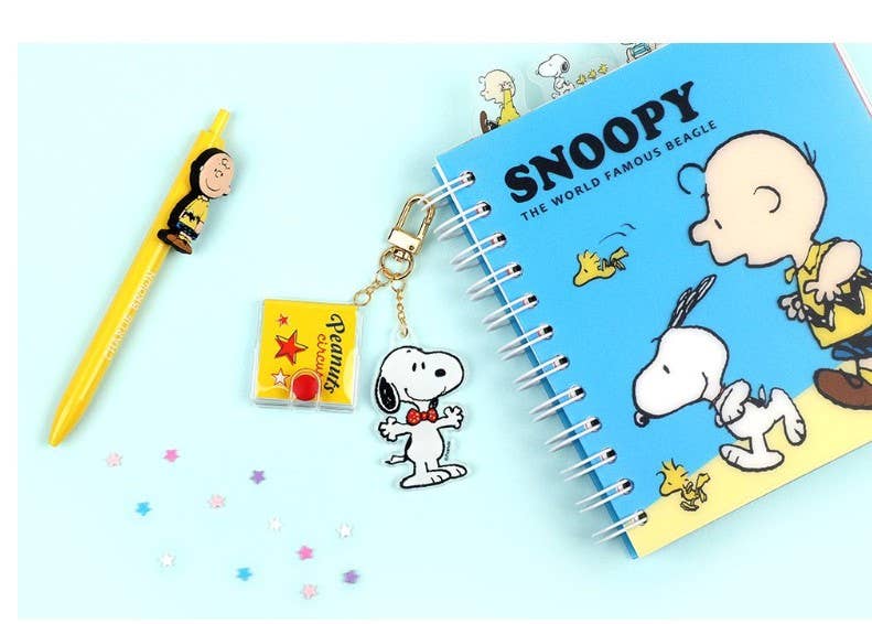 Peanuts Snoopy acrylic charm keychain ring with Mini Memo