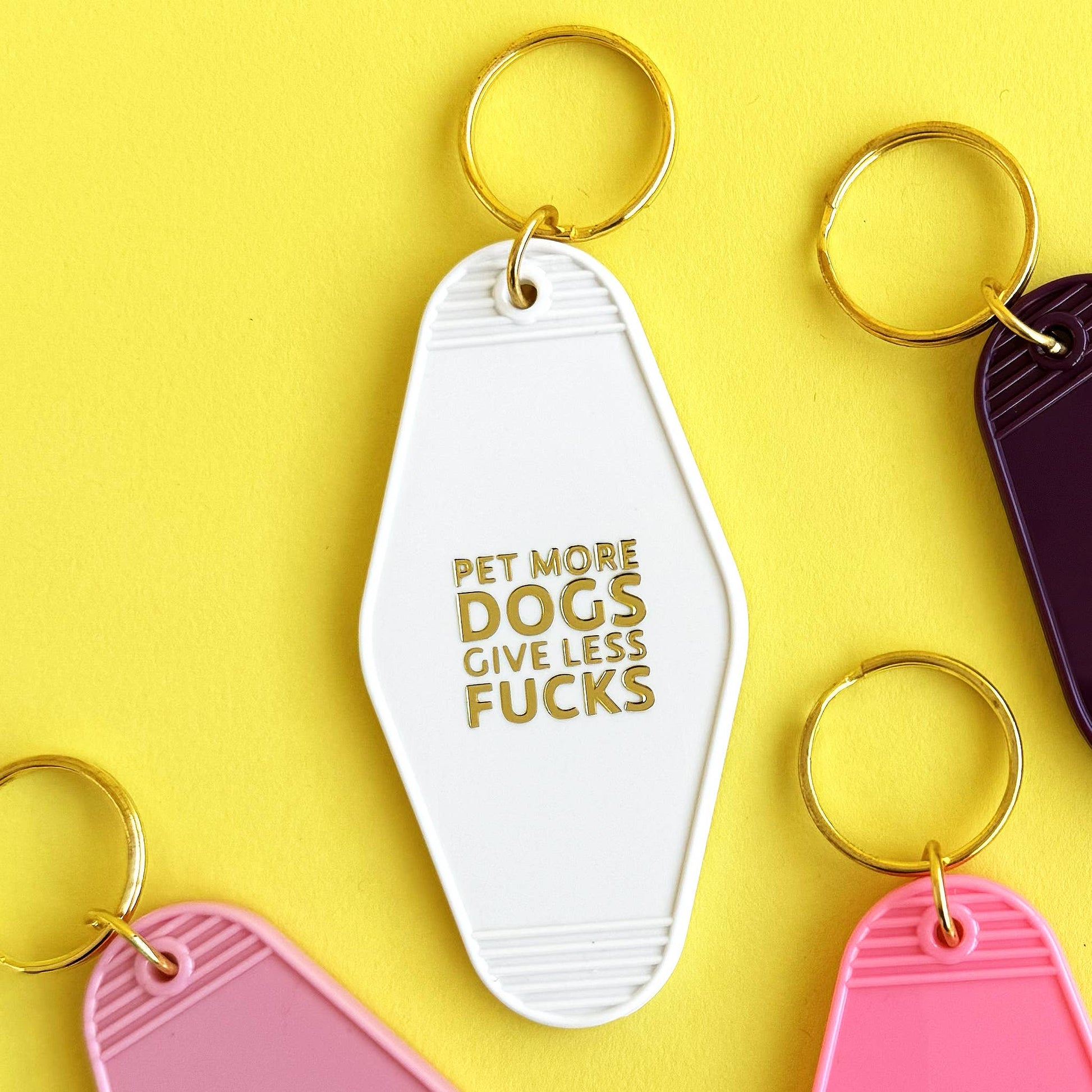 Pet More Dogs Give Less Fucks Gold Printed Keychain