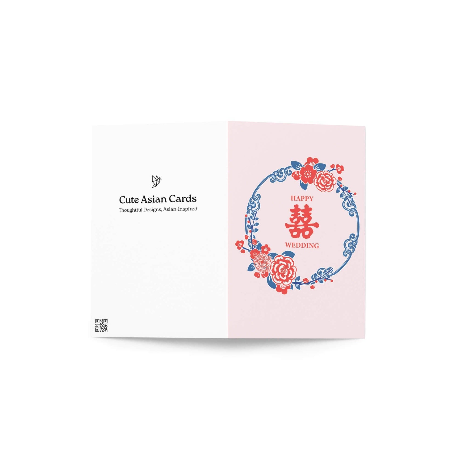 Pink Double Happiness Asian Wedding Cards | Wreath Greeting Newlyweds