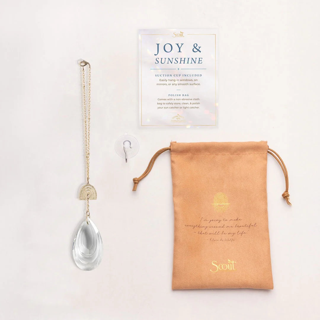 Inspired by our best-selling line of suncatcher décor, the new Pocket Suncatcher brings a burst of rainbows and sparkle to any setting. These convenient, on-the-go light catchers are perfect for hanging in windows, adorning your favorite plants, or adding a bit of charm to your rear-view mirror. Crafted from premium gold-dipped brass and durable, shatter-resistant glass, this little rainbow maker is made to go wherever you do.