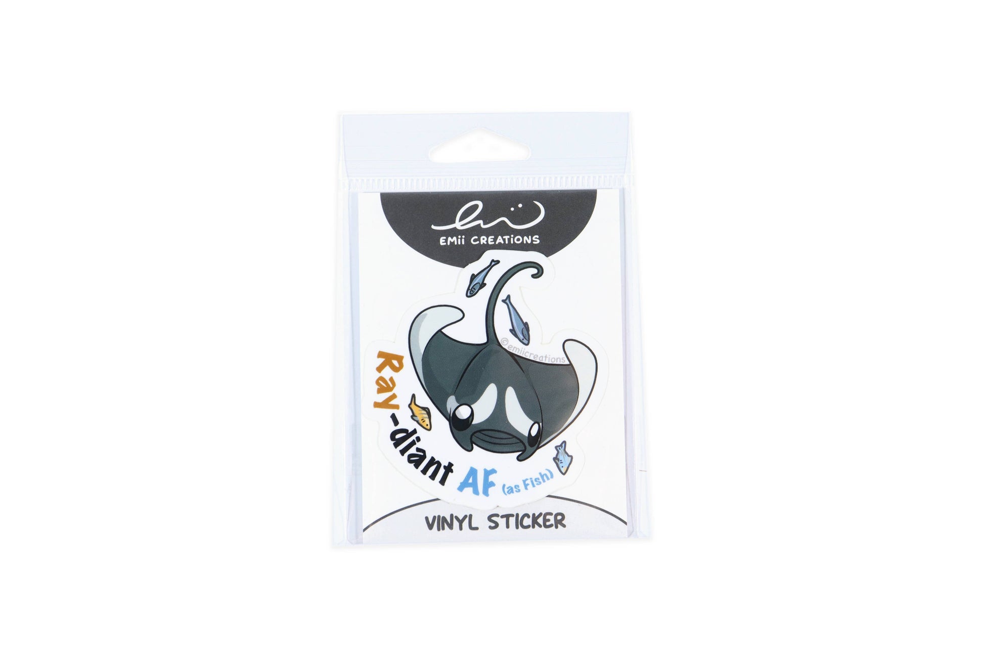 Introducing our "Radiant Stingray" sticker accompanied by the playful text "Radiant AF (as fish)."