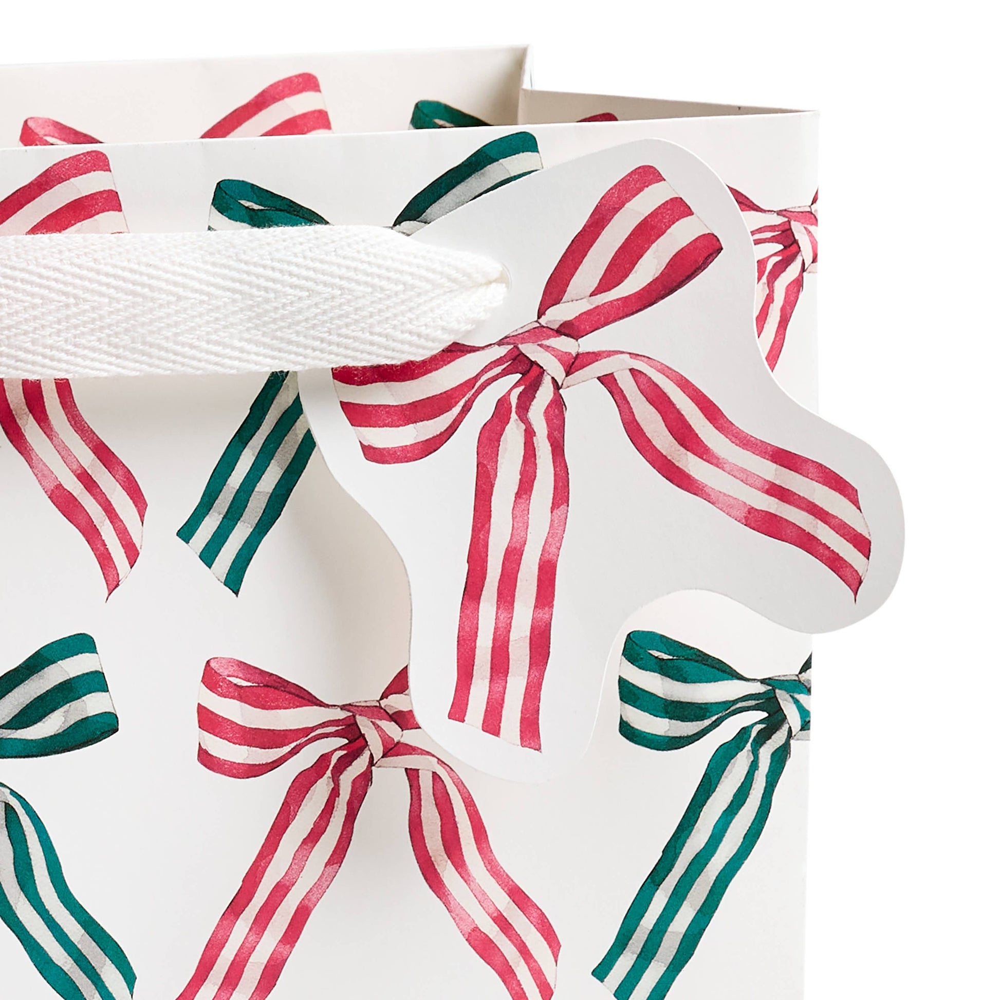Ribbon Candy Bows Gift Bag in medium size, featuring classic red and green Christmas colors.