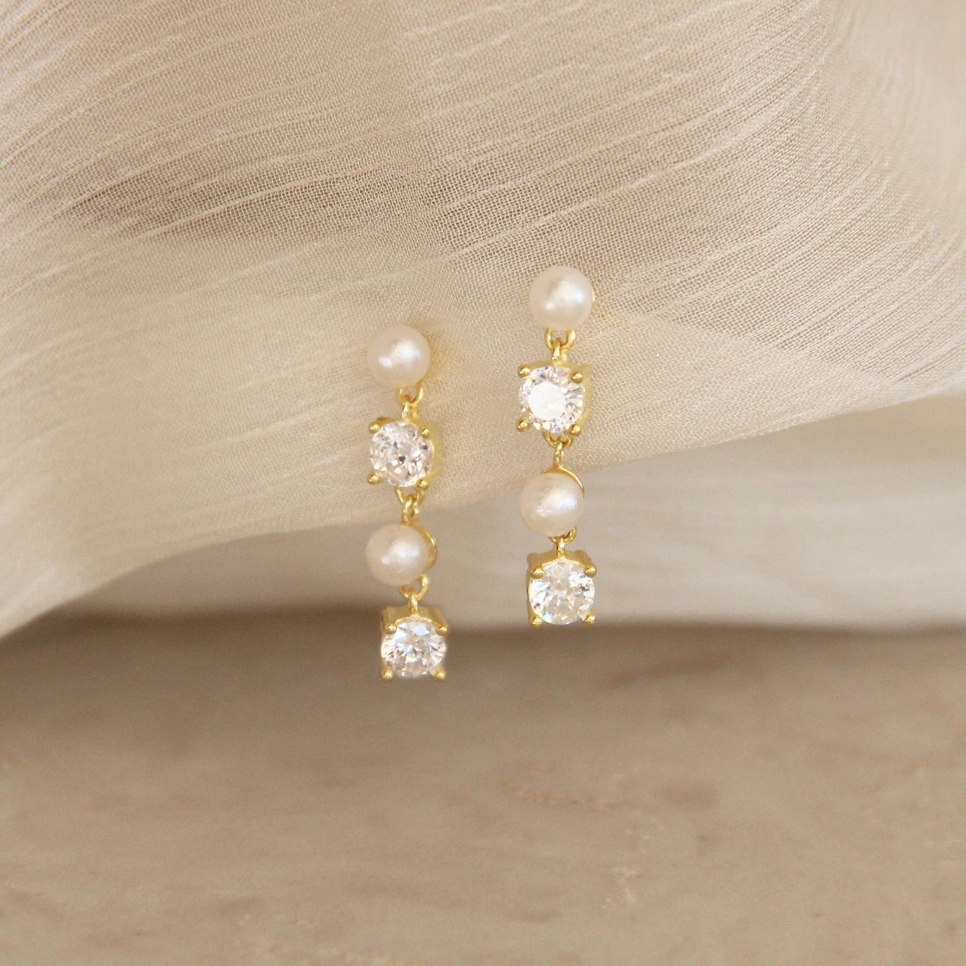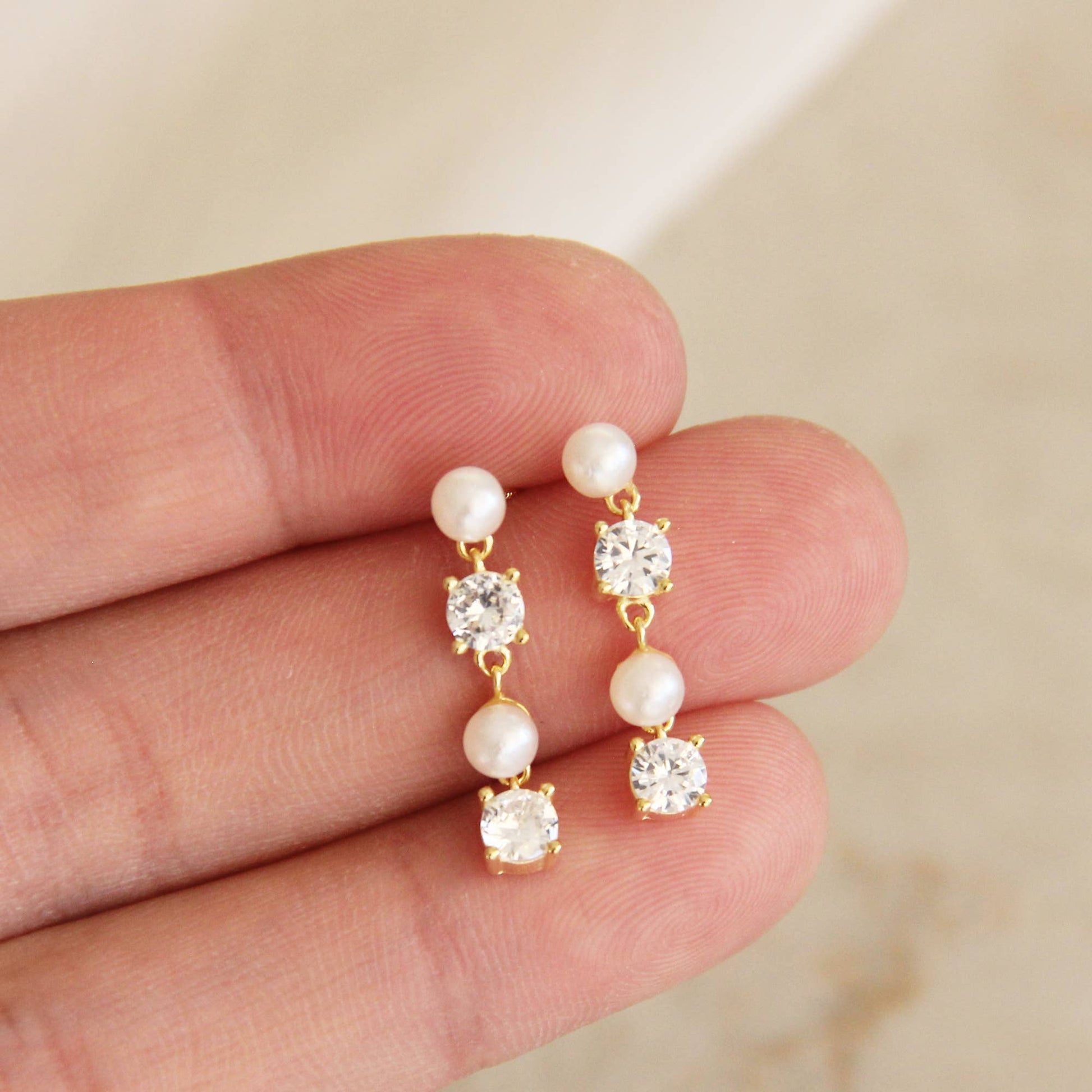 • This listing is for a pair of our Ruth Earrings. Featuring tiny pearls and tiny CZ round stones