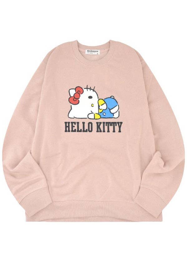 Sanrio sweet dreams are made of this Sanrio Hello Kitty Sleepy Pink Sweatshirt & Pants Set. This kawaii sweatshirt set features a full front graphic of sleepy Hello Kitty on poly-blend base, crew neckline, long sleeves, loose fitting, and super comfortable brush inner detail. It also comes with a matching comfy sweat pants with elastic waistband and drawstring closure. Let's snuggled up in pink perfection.