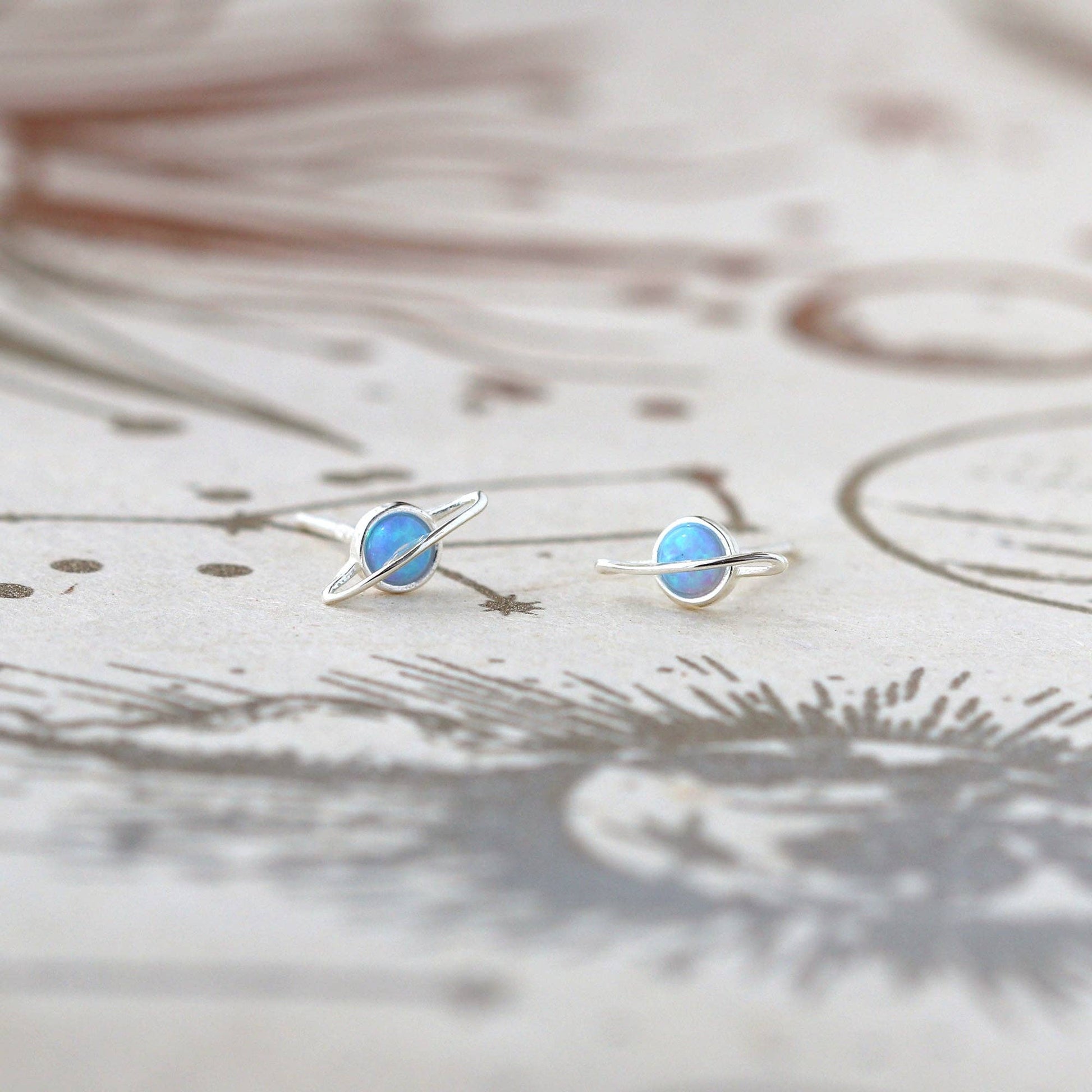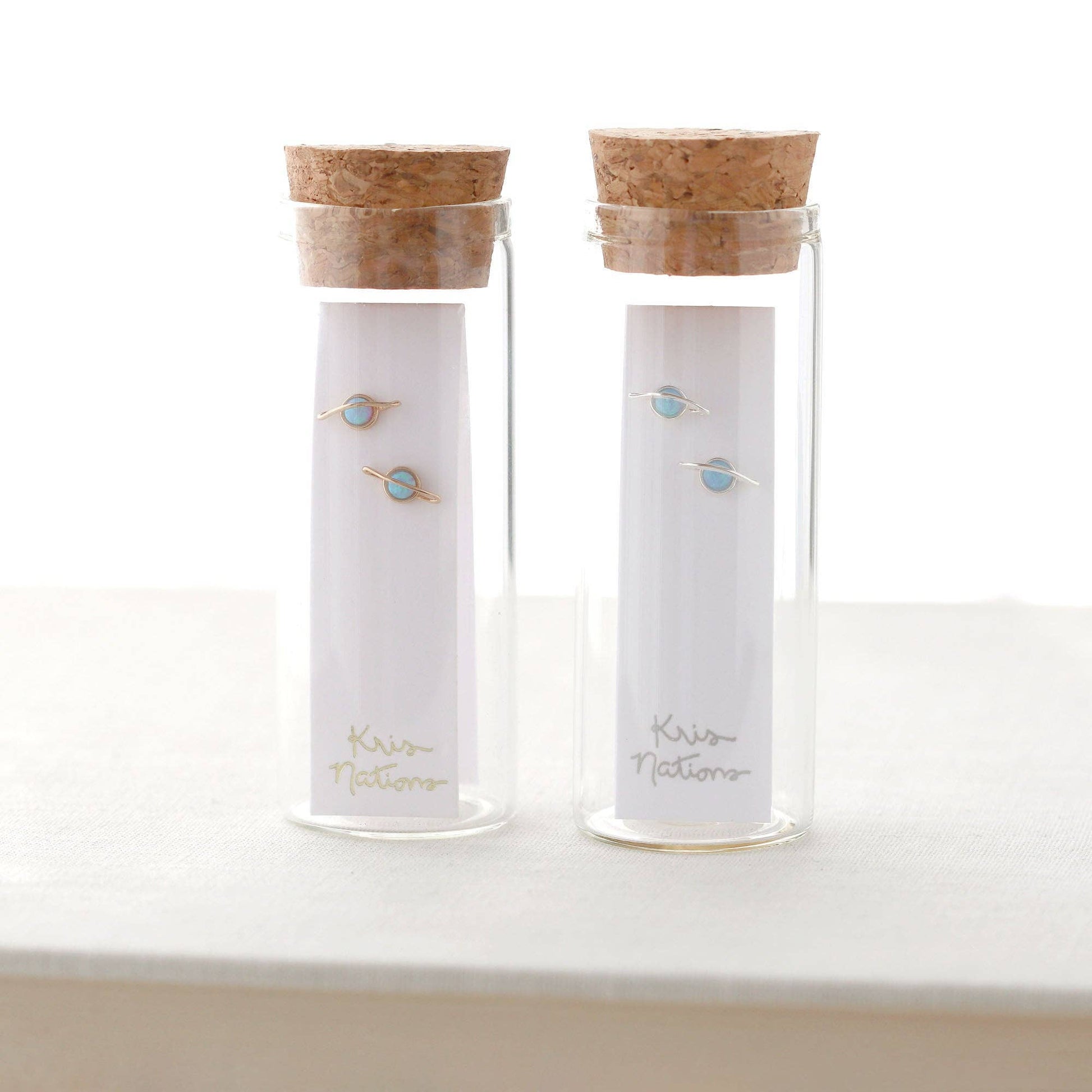 These celestial studs feature a glowing opal planet encircled by a delicate ring — a nod to Saturn’s quiet power and balance. Crafted from recycled sterling silver or 18k gold vermeil, each opal shimmers with otherworldly color, symbolizing confidence, peace, and reliability.