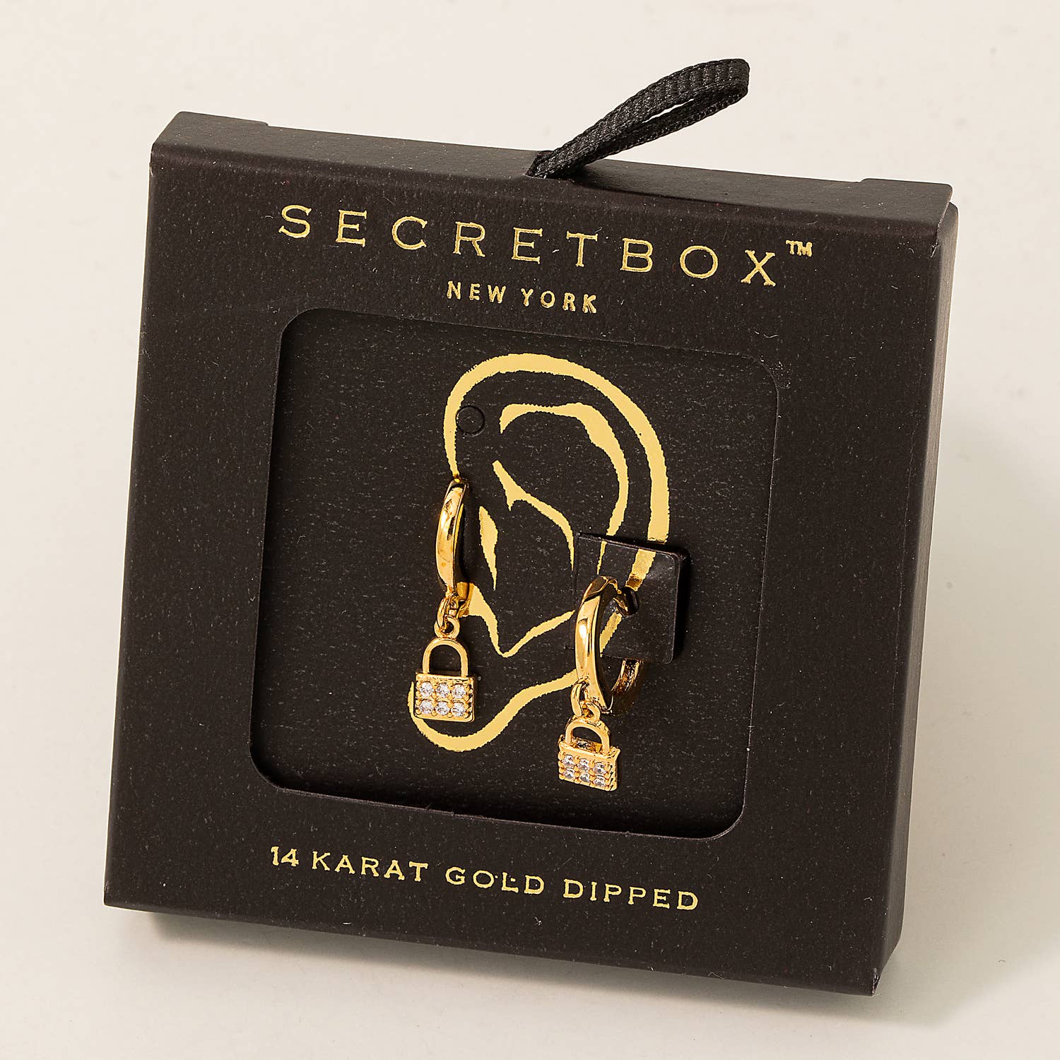 Secret Box Mini Lock Huggie Hoop Earrings Set