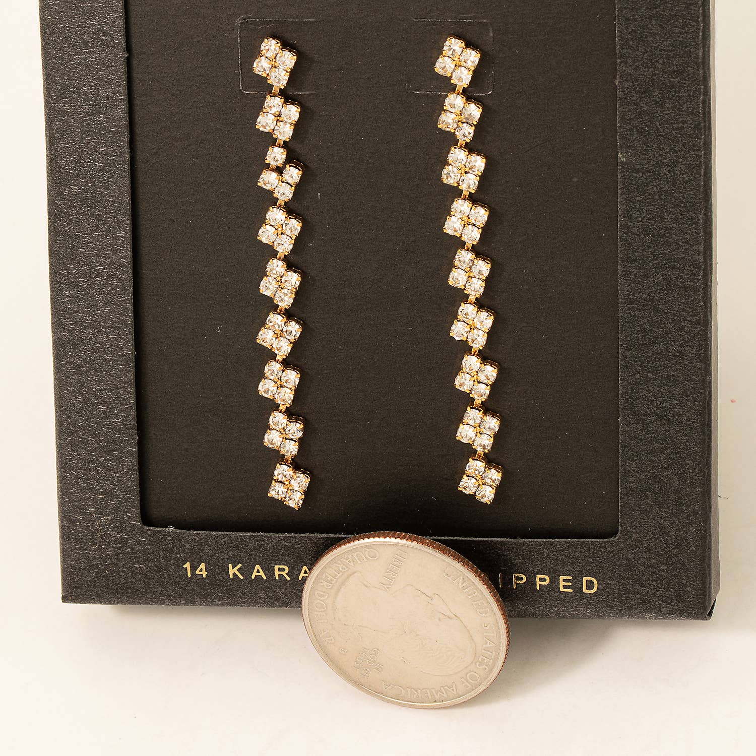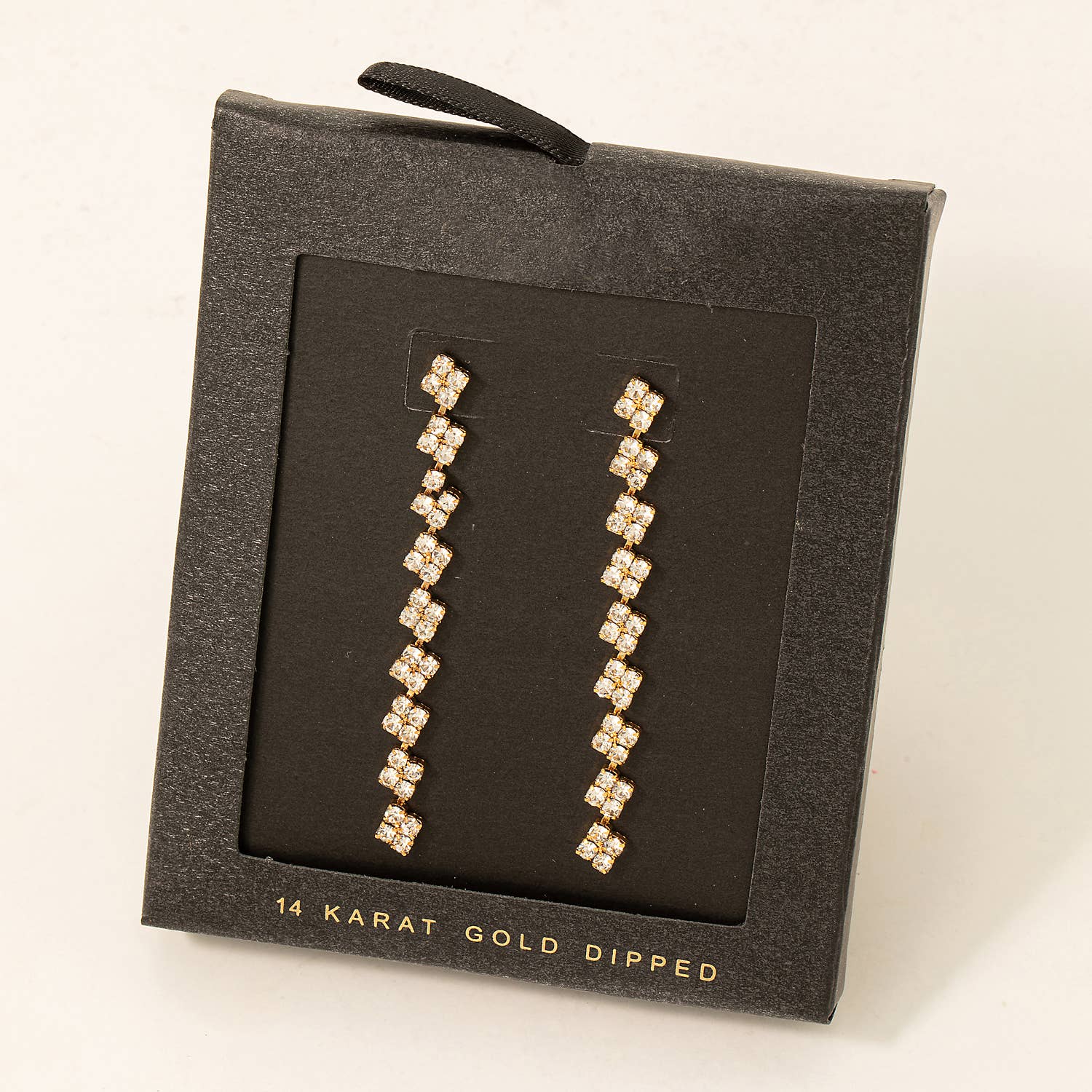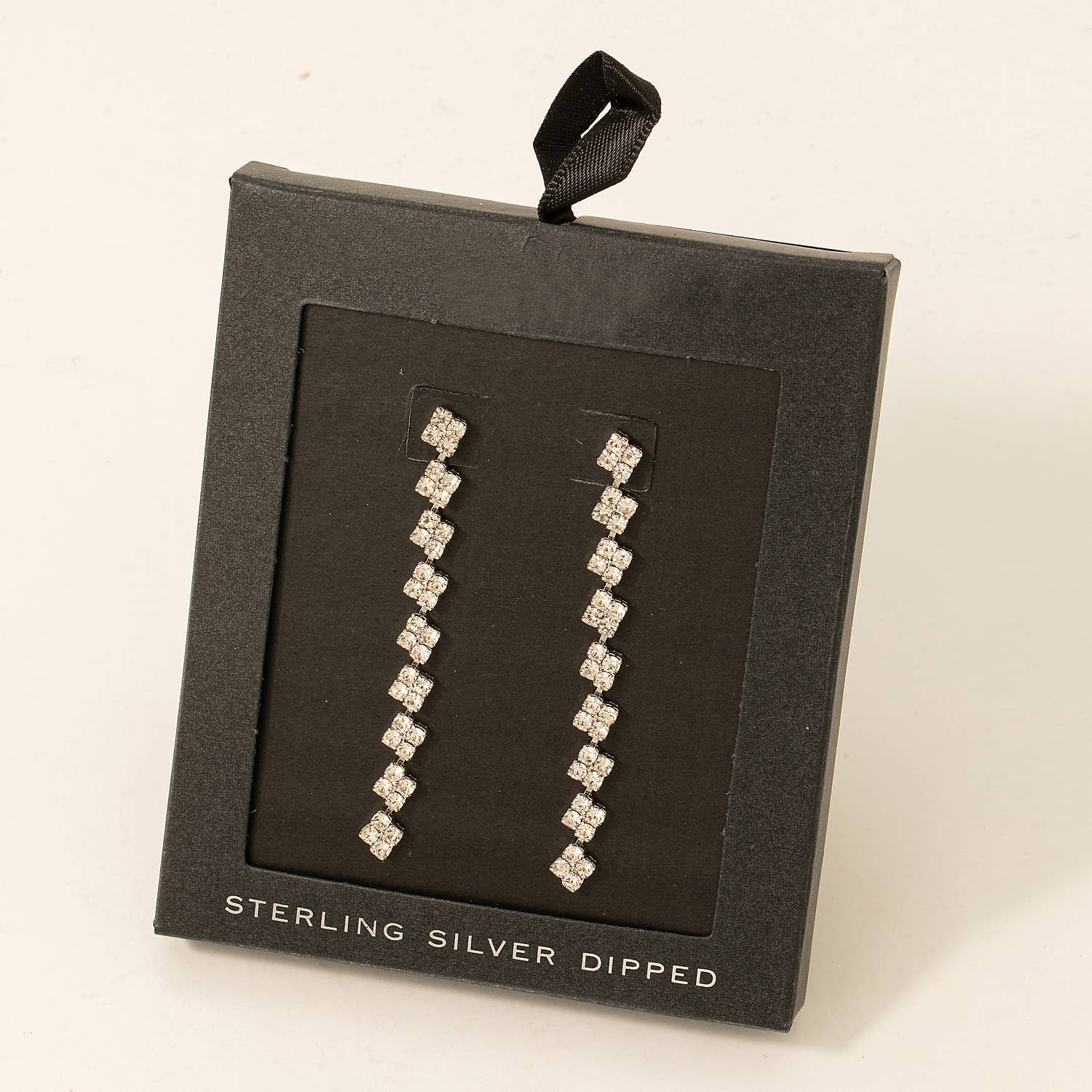 Secret Box Square Rhinestone Chain Dangle Earrings