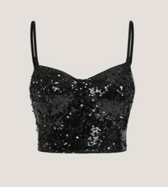 Black Sequin Zip Back Cropped Cami