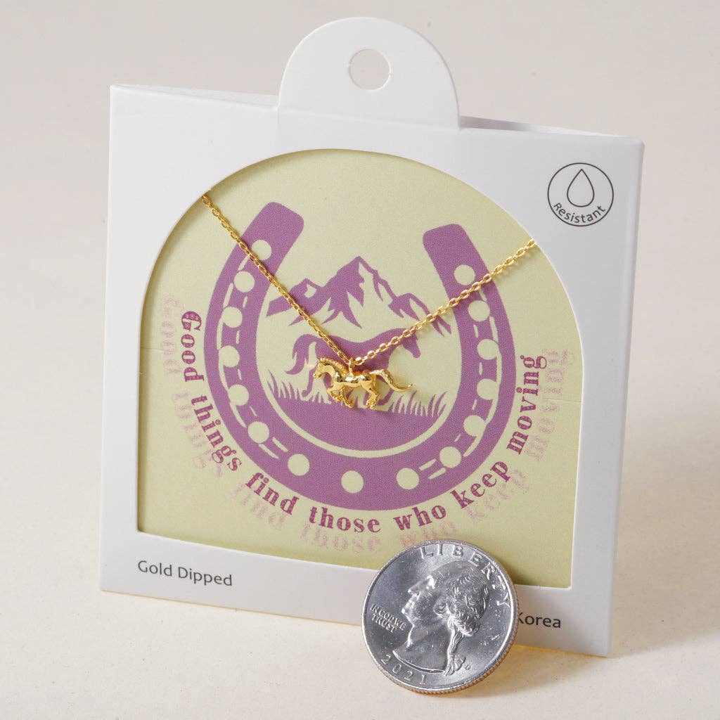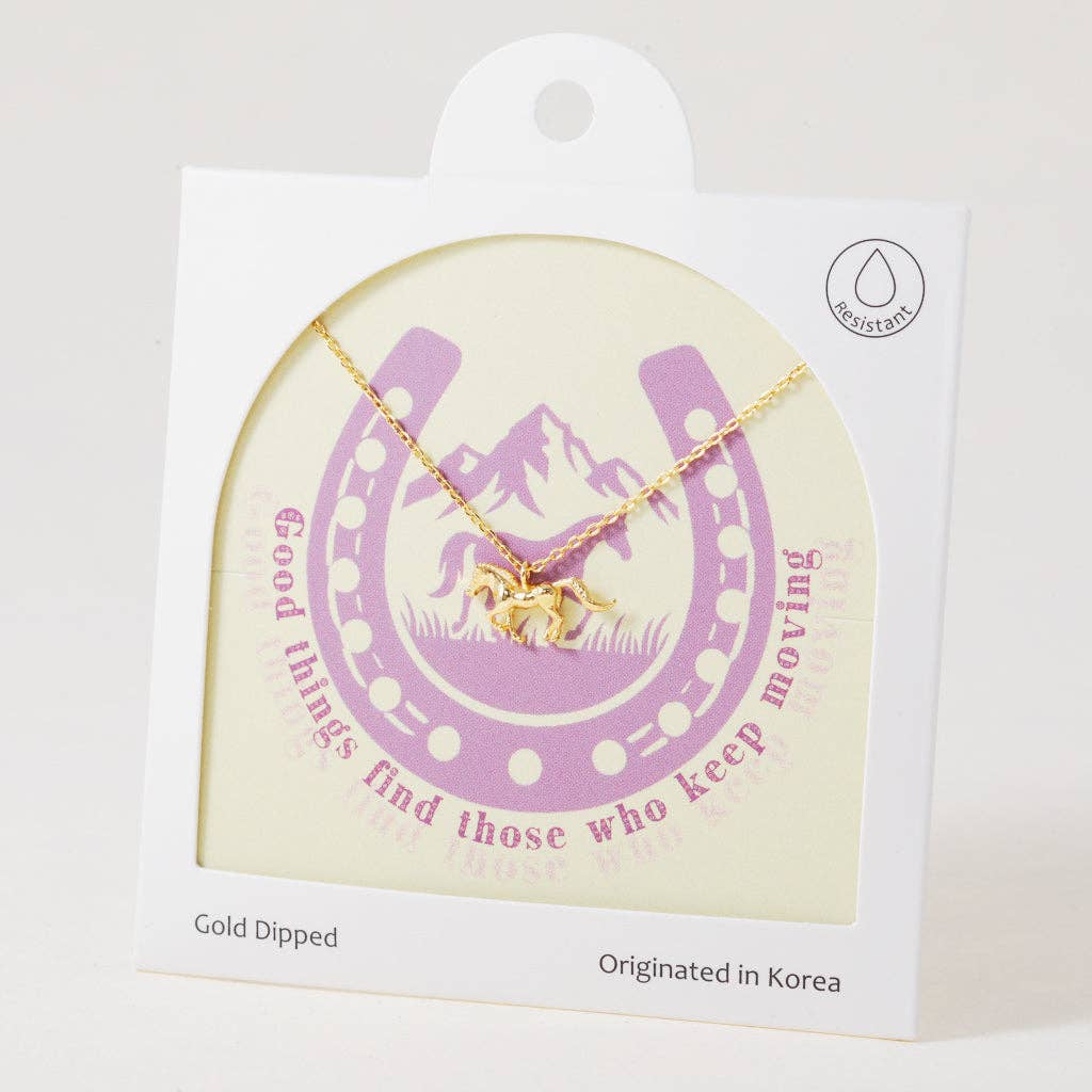 Saddle up in style with The Great Stallion Necklace, a charming piece featuring a galloping horse framed in a lucky horseshoe. It is an empowering gift or personal reminder to stay motivated. Perfect for equestrian lovers or anyone chasing their dreams.