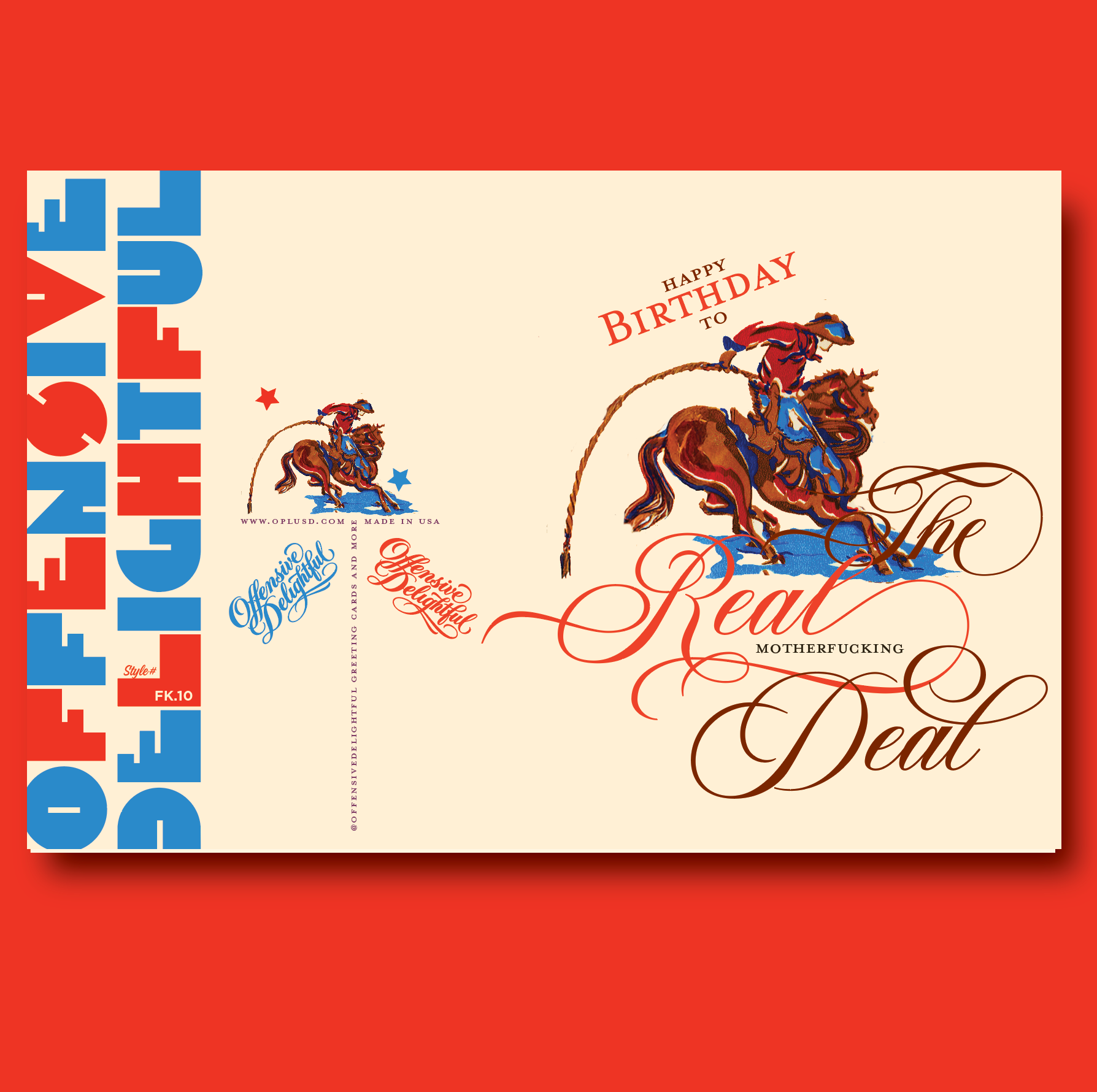 "Happy birthday to the real motherfucking deal" Cowboys, real men, dudes, ranches, the west, Americana! A cool greeting card, for a cool dude. With a flair for the vintage, and definitive badassery, this card is reminder that even elegant men need a little tomfoolery once in a while! cards for dads, cards for guys, dudes, and the real deal.