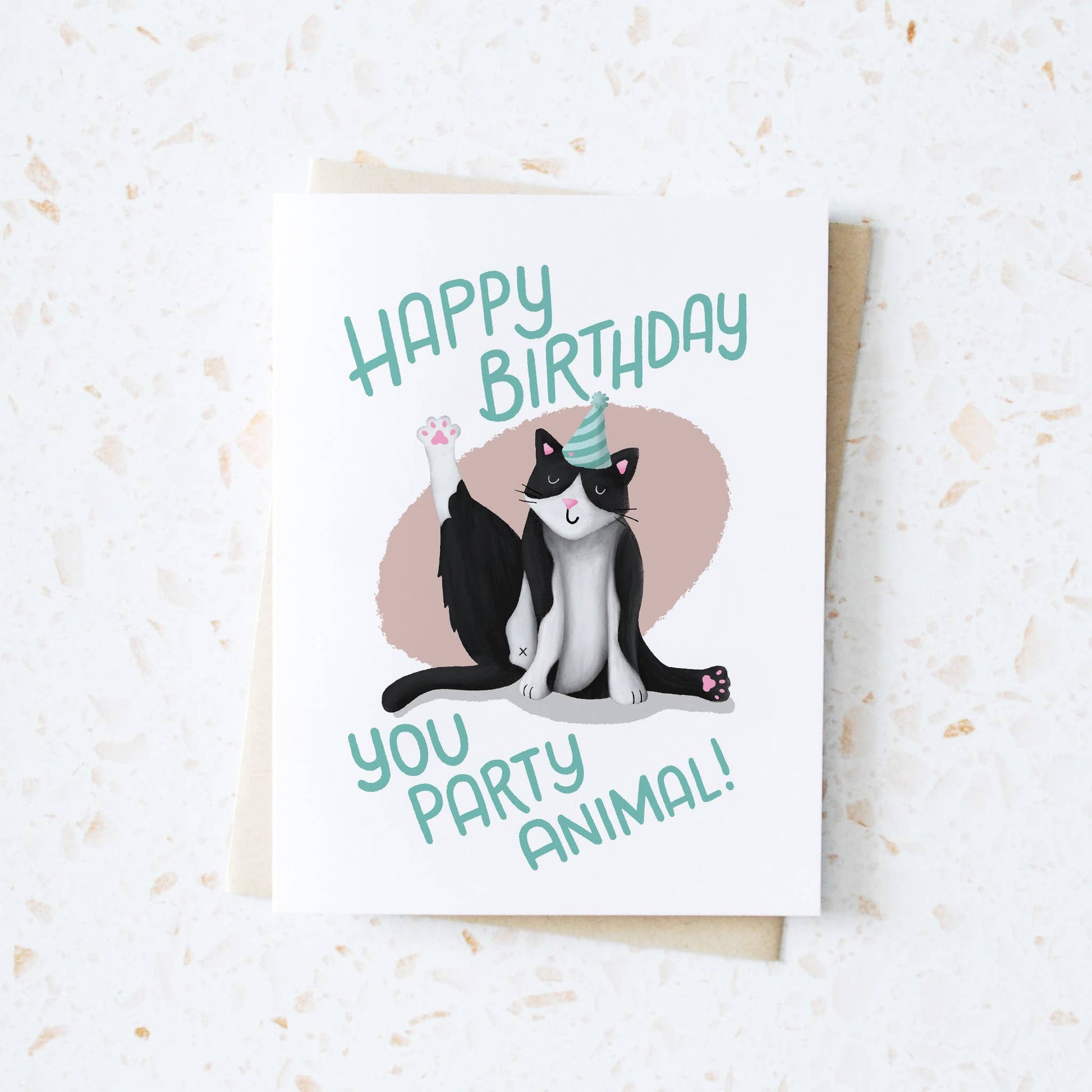 Tuxedo Kitty Party Animal Birthday Greeting Card