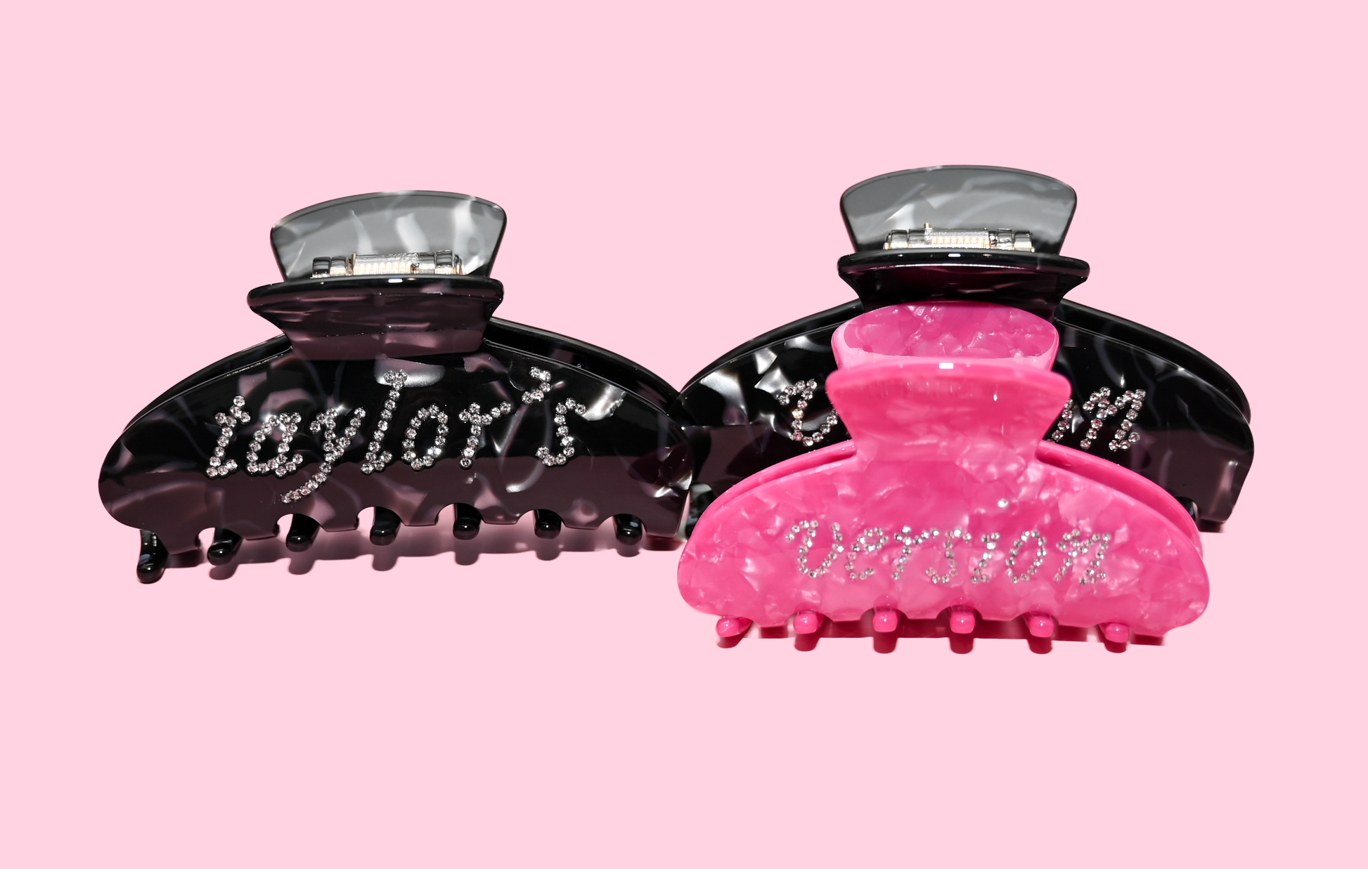 One side says "Taylor's" and the other says "Version" and the rhinestones are embedded into the acetate.