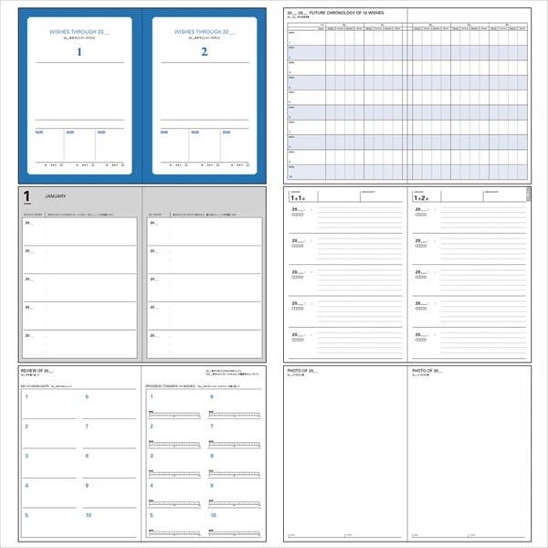 Consciously preparing for the next five years and aiming towards your desired goals and dreams, this diary is designed to 'paint the future,' free from any specific year. Every insignificant moment, determination, lofty aspiration, unforgettable words, and commemorative dates—all captured within this single volume. Take a moment to reflect on your past and future with this Japanese concept diary crafted by a Japanese notebook maker.