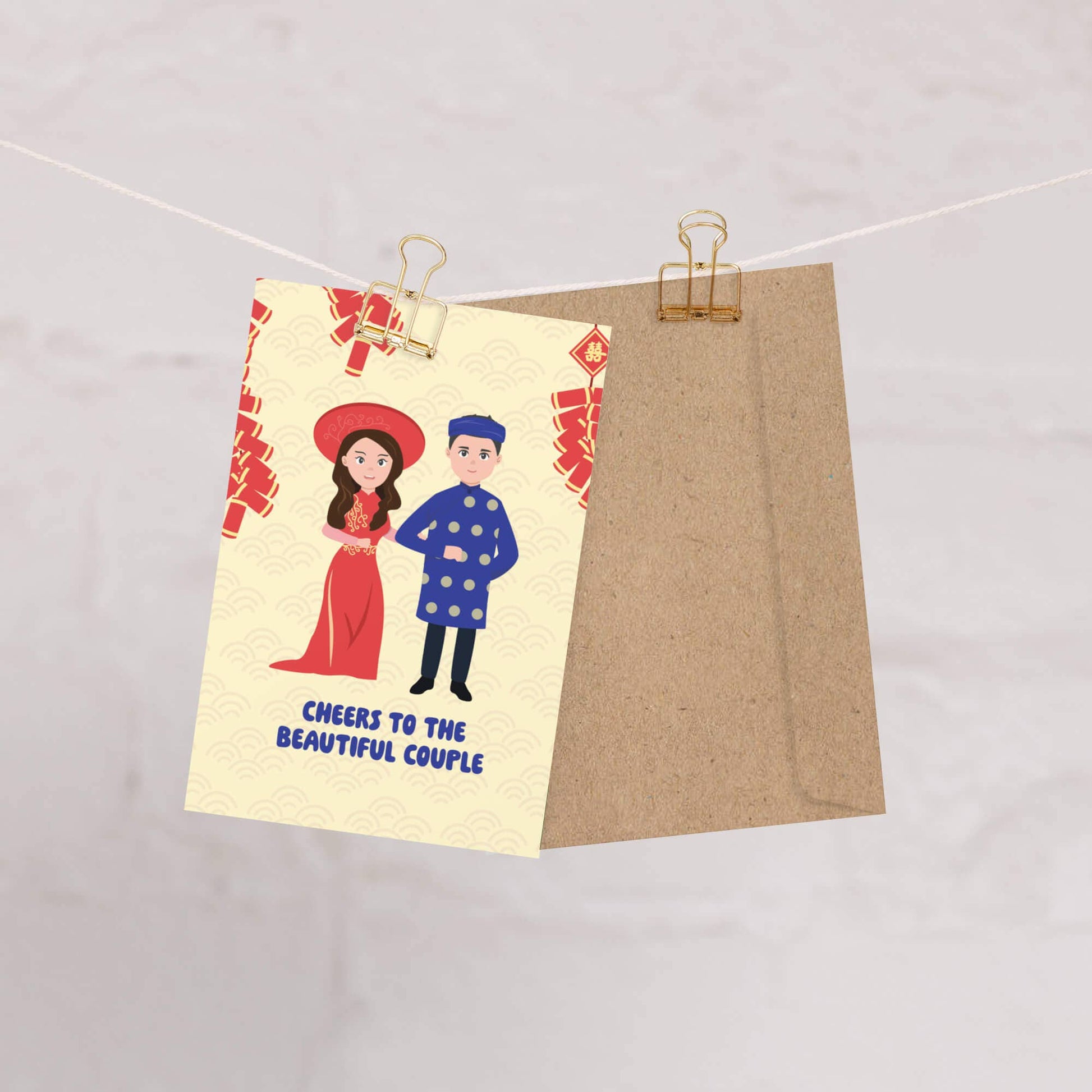 Vietnamese Couple Asian Wedding Cards | Ao Dai Greeting Bride Groom