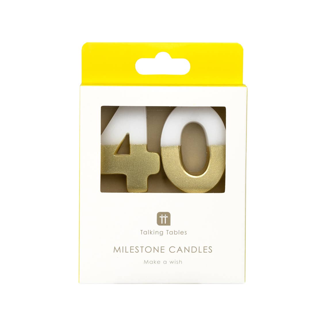White & Gold Number Candle - 40 | Milestone Birthday |