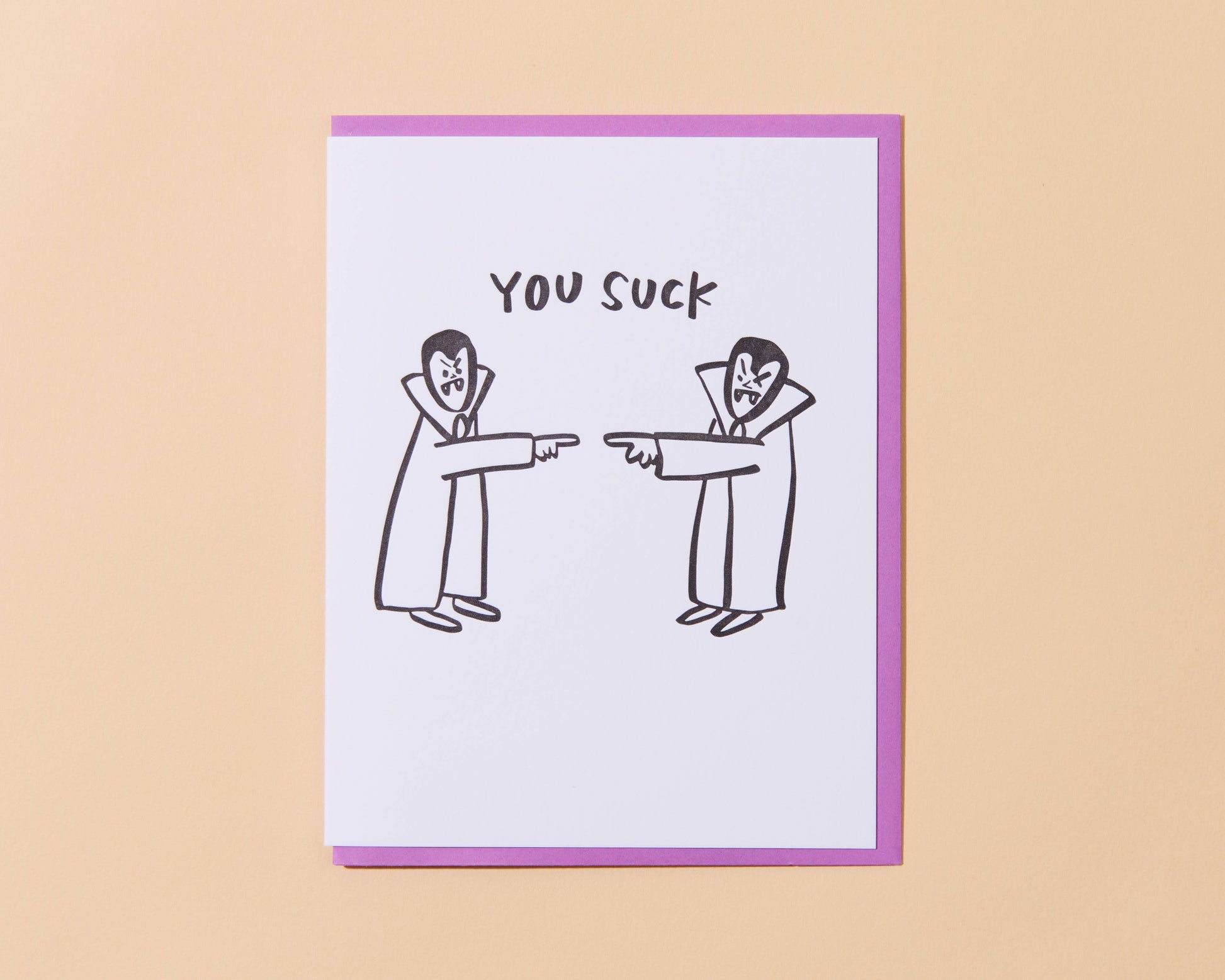 You Suck Halloween Letterpress Greeting Card- Made in USA